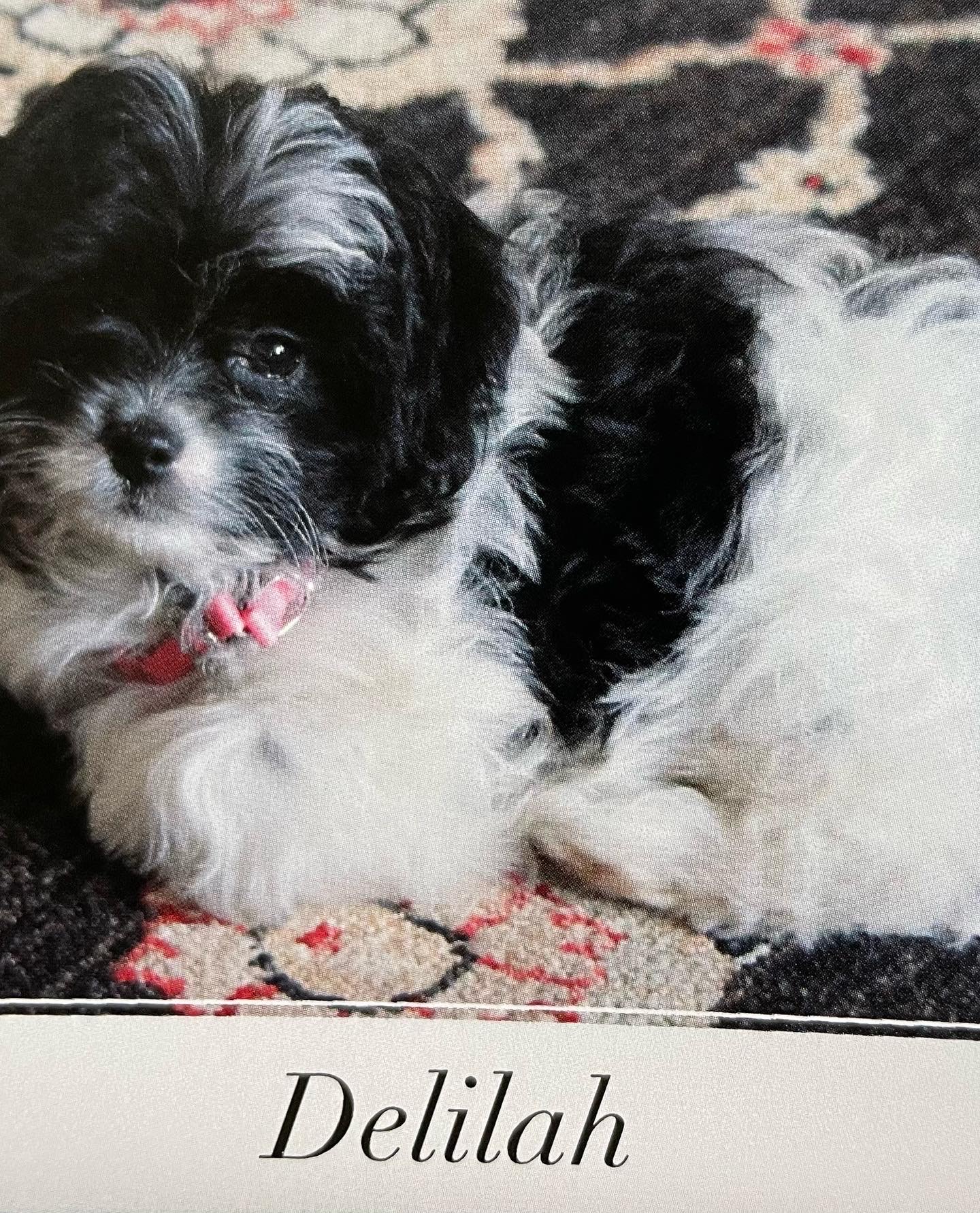 How do you spell “love”? D-O-G, or so her humans thought when their father announced the Havanese puppy’s impending arrival in October, 2011. Delilah was named after the woman in the Bible who betrayed her lover and gouged out his eyes, which perfectly expressed her human father’s feelings about having a dog.  The popular song, “Hey There, Delilah,” made the name stick, and besides, this name suited the men of the house better than the name proffered by the then seven-year-old girl: “Wishes.”