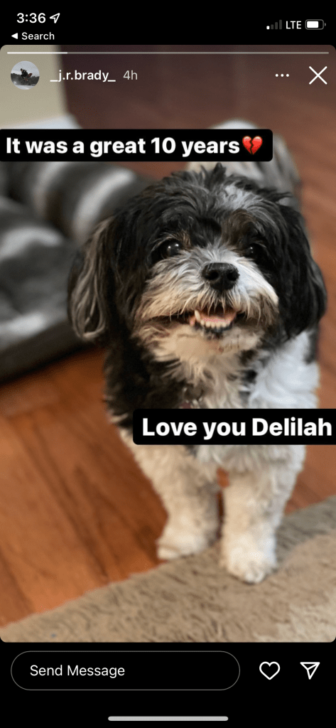 Delilah-Dog Brady, born August 4, 2011, departed this earth on June 6, 2022, at the age of 10. She is survived by her human family, the Brady Bunch and will be missed.