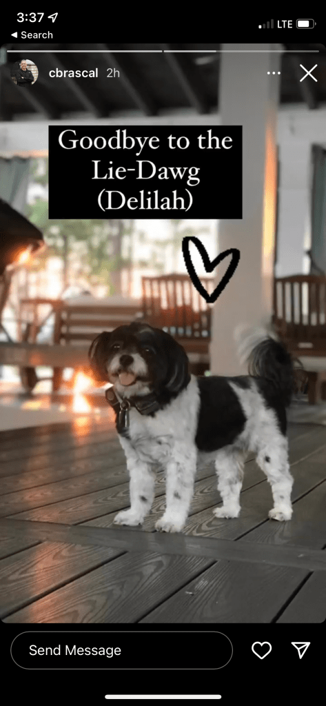 Delilah, (aka Lilah, The Lie Dog, The Doo Dawg, and Deliler) left her mark on this world and every carpet of the house. Many UPS drivers will miss Delilah’s incessant barking from behind her humans’ legs as she feigned to protect.