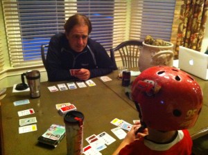 My husband Bob was and is a terrific dad! He is a loving and patient father to our 2 special needs kids. He took a while to reconcile himself to their needs, and now works with them and accepts them as they are. No matter how tired he was, he always had time for a game or a wrestle or to ride bikes or snowball fight. He taught them the beloved board and card games of his childhood, told them stories of his mother (who died before we met) and was willing to shoulder all the load when I had to go out of state to help my family deal with things for 10 days after the death of my grandmother when the kids were in school. His Saturday breakfasts and cookouts are the stuff of legend among our family and friends (I am not allowed to cook at those times). A backyard pool at our home was a non-negotiable, so he could swim and play water volleyball with the kids, when we first bought our home. He’s now an awesome Papa, too, loving and patient with all 3 of our grandchildren.