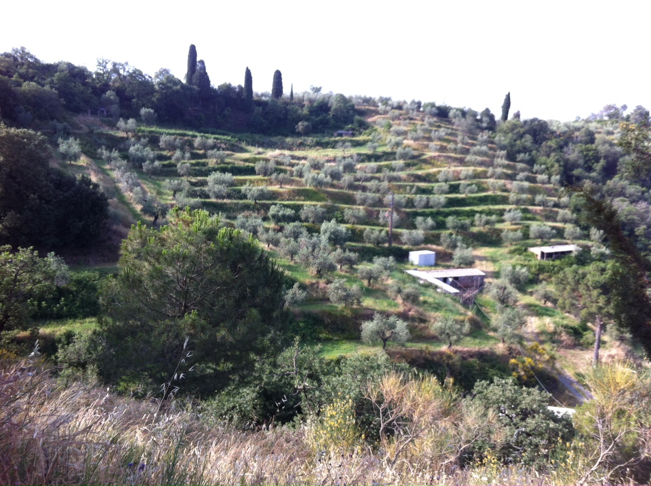 I went sideways on the hill, cutting the distance between grapevines and olive trees on the property of our “villa agrituristica.”  (It’s ironic that I am currently using wifi to write to you within the rented building, built in 1628!) “When does the path turn ‘UP’,” I wondered, staring up the hill that now beckoned. “I wonder what the view would look like from up there?”