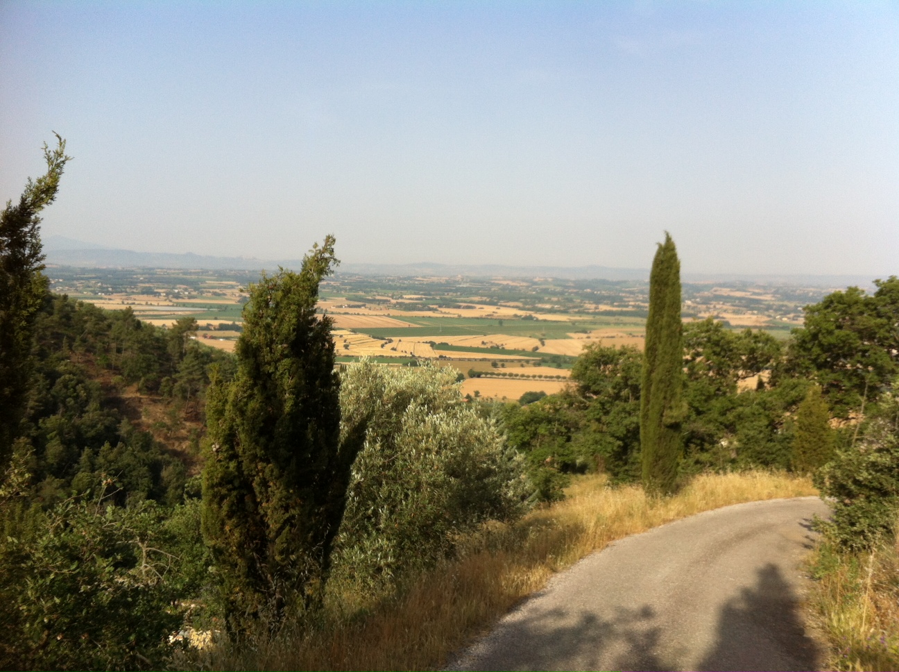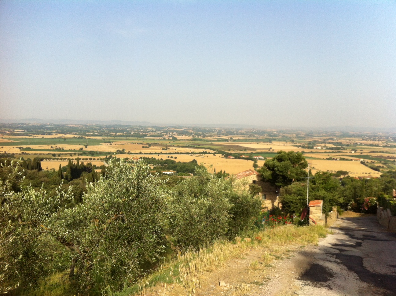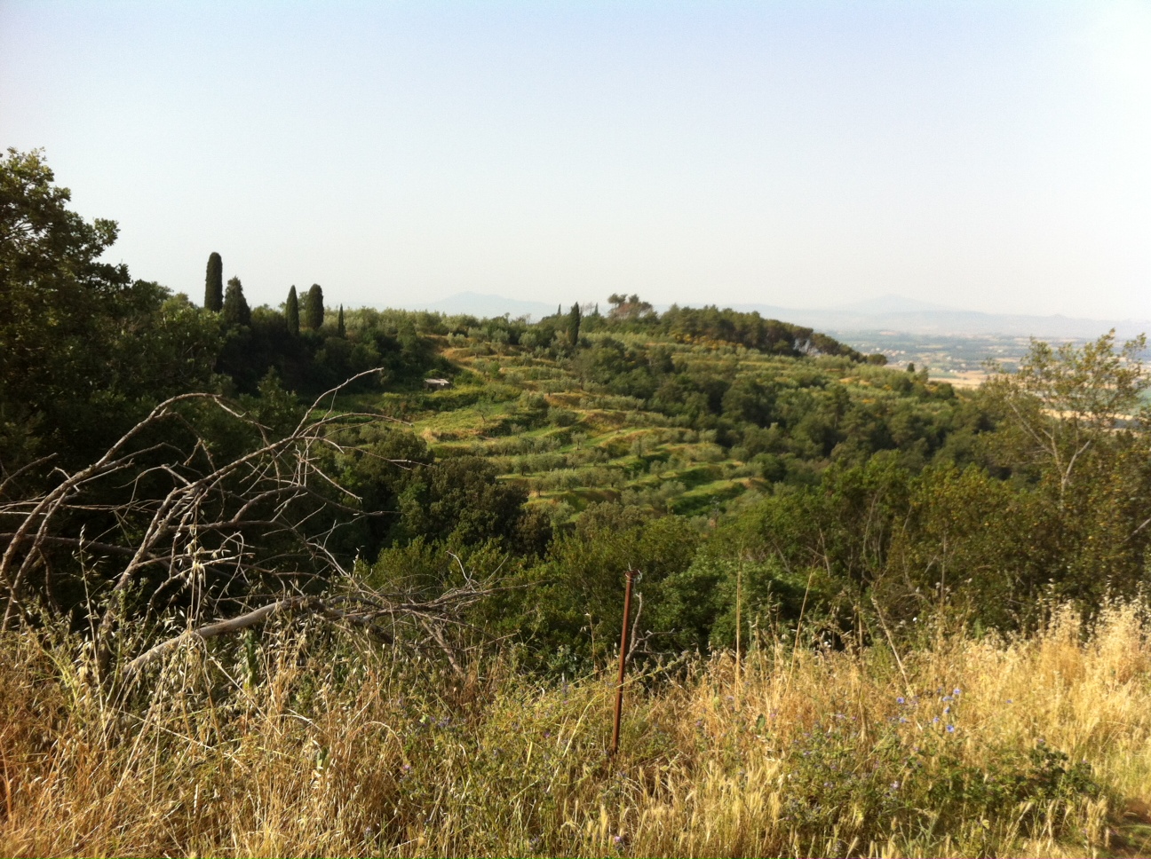 The view to my right (east) was completely different – reminding me of the smoky Appalachians. Deep green trees covered the mountains, providing plenty of hiding for the deer and hundreds of cinghiale (wild boar) which I had seen on previous trips to Italy. The still-rising sun was already sweltering hot at 9am.