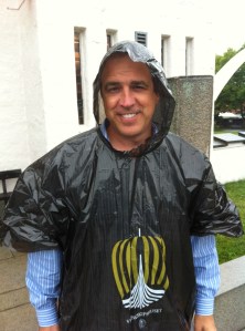 After twenty minutes, Chris approached a cab who stopped, and the driver explained he was picking up someone else. “Would you please call one of your partners for us?” Chris asked as rain poured from his poncho onto his face.  The man agreed, and we went back to obediently waiting under the promising sign.