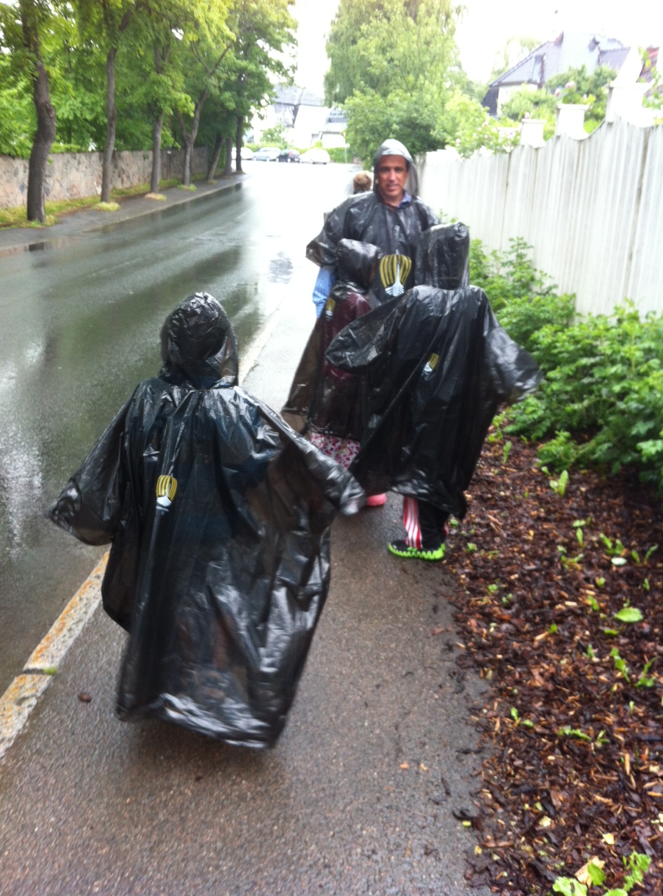 Another twenty minutes and the kids were getting giddy and putting up thumbs for hitch-hiking. I had started jumping jacks to keep warm, but tucked my hands and Italian leather purse inside of the poncho, wishing I had thought to buy two.