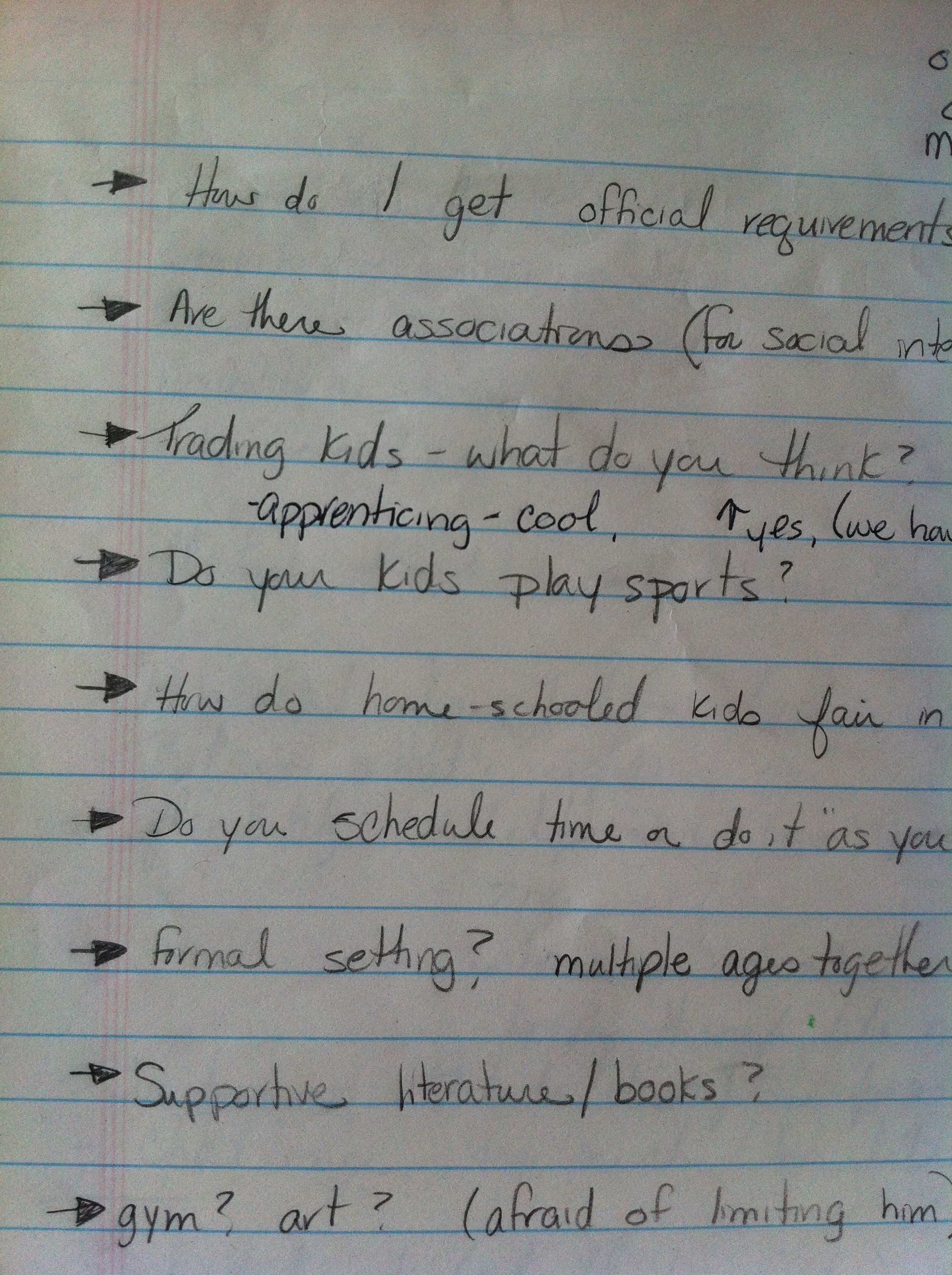 In her book, Debra Bell recommends writing down WHY you homeschool. (And I would recommend writing down WHAT YOU WANT AT THE OTHER END OF SCHOOL whichever method of schooling you choose – to keep yourself accountable to your principles.) This list has kept me “in” many times when the “bad wolf” was whispering contrary thoughts in my head; but it has also guided many decisions of ours, “Should we hire a teacher?” “Should we participate in a homeschool group?” “Should I offer to teach other like-minded families in a group or start our own school?” to name a few. We just look at how those decisions affect (or don’t affect) this list of benefits and then decide.